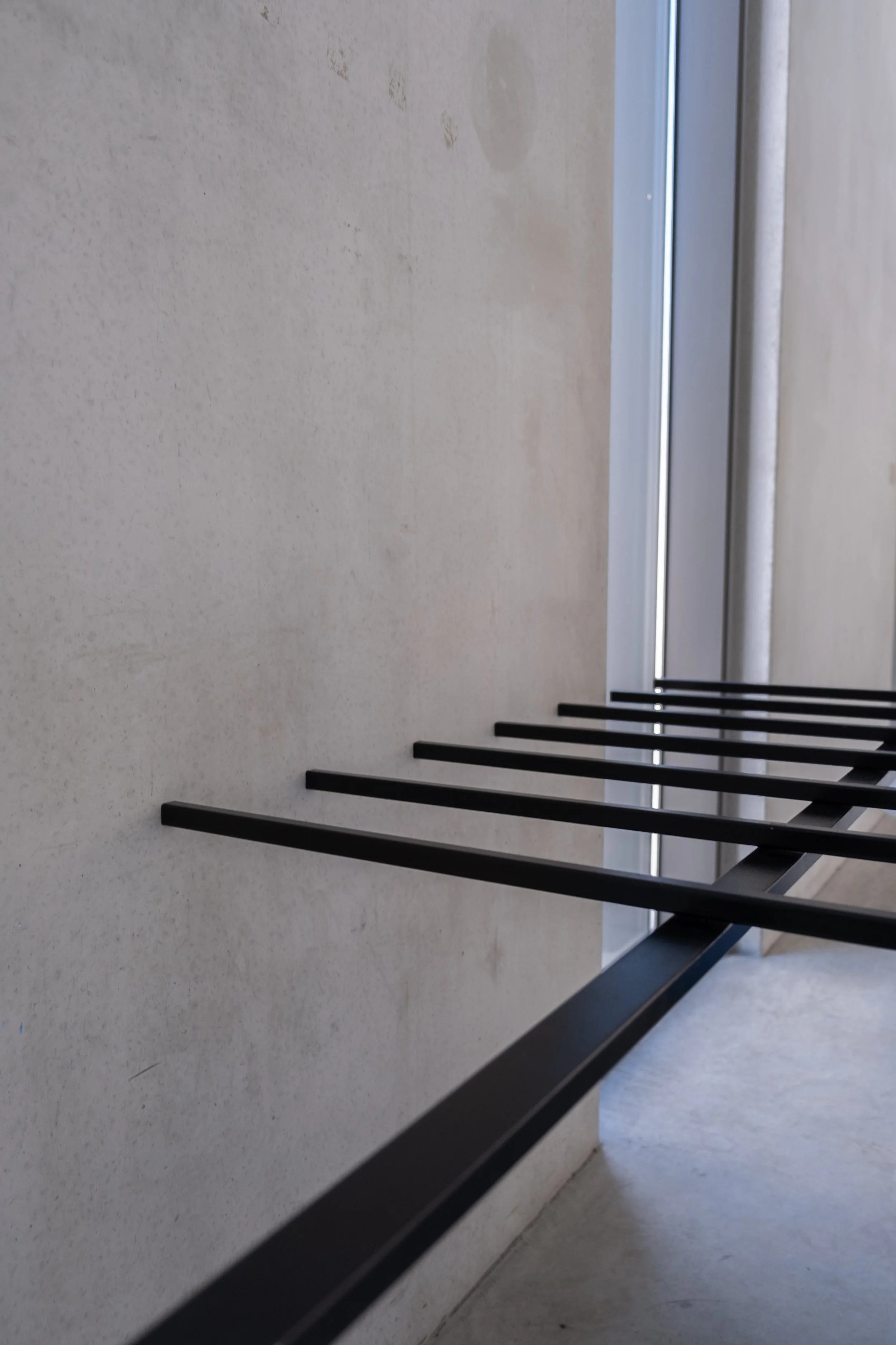 Installation in conversation with a part of a work of Philippe van snick (black pilar)